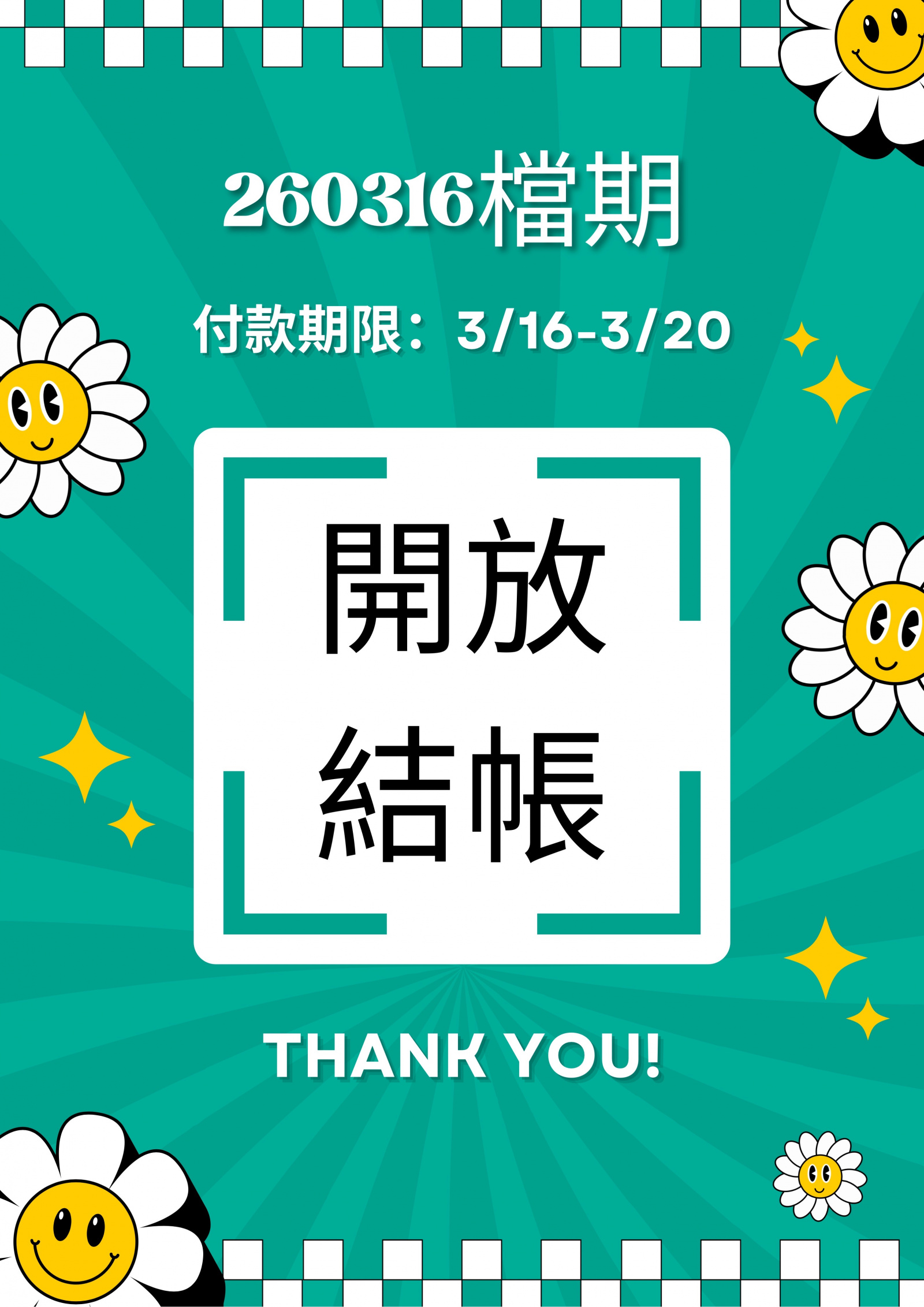 1️⃣開放結帳後的5日內,付清系統所有未付金額(不論商品是否到貨)/(期限內可來店付現)。